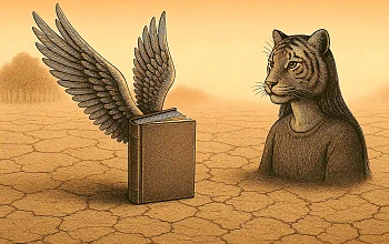 The meadow stretches out under an easy afternoon sun. A man lies beside a mound of pastries, one hand resting lightly on a loaf he never bothers to take. A woman sits a few steps away, watching a roasted goose drift in slow circles above her, carried by a mild breeze. Near them,…