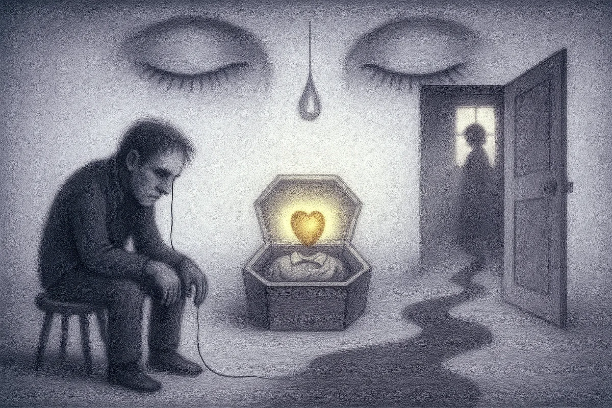 „Shall I leave you alone?“ his mother asked from behind, and coughed – sharp, cutting. He didn’t answer, pulled one of the stools toward him and sank heavily onto it. The coffin swayed threateningly, and he propped it with his knee, glancing in alarm at the dead man, who had nearly toppled onto the…
